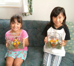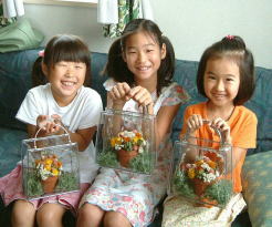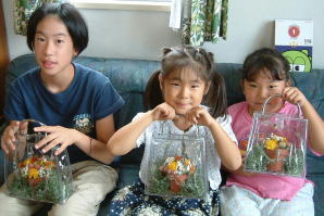 今回は夏らしく、ビーズチェーンとシースルーのバックを使いました。そしてかわいい蜂さんは大人気!子供達の歓声につつまれる楽しい教室でした。人工的な材料との組み合わせはよりいっそう、ドライ素材の自然の美しさや素朴さを浮きたたせてくれる面があります。お子様は思い思いに、自由にお花をさしてもらいました。みんなお部屋のどこにかざったかな?また春休みに会いましょう!