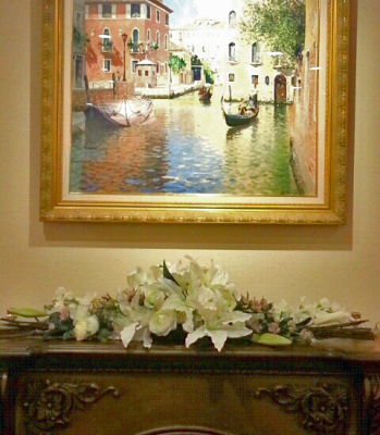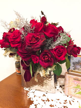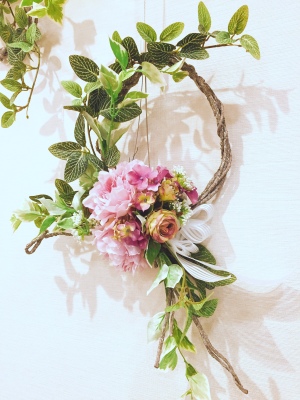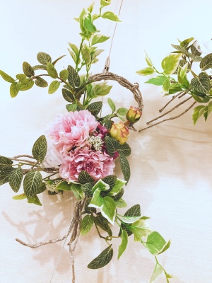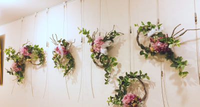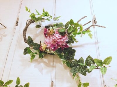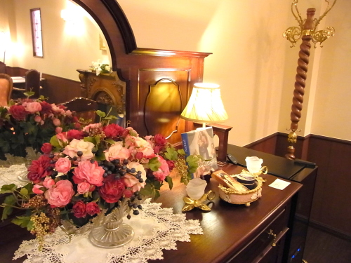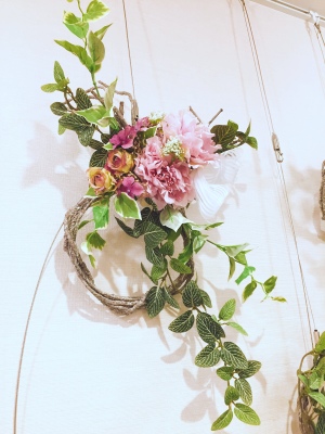 リスグラシュさんはアトリエレモンリーフの花インテリア(リース、テラコッタなどの器へのアレンジ、ゆりのスワッグ、ガーランドなど)たくさんディスプレイしてくださっています。瀟洒な美術館のように絵画や調度品がすばらしく、それでいて気取らないオーナーさんとの会話が楽しい、リラックス&エレガントな大人のティーサロンです。またお目にかかれますことを楽しみにしております。