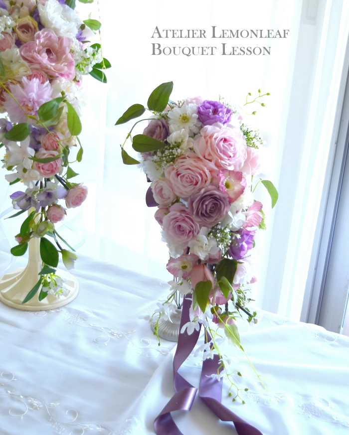 キャスケードブーケとクラッチブーケの課題作品が完成しました!