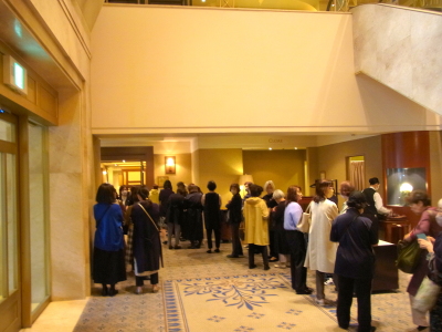 | 毎年、開場前には、お客様に行列をいただき、誠にありがとうございます。 宴会場前からホテルの廊下さらにフロント前まで長く列が伸びています。 アーティスト一同、お客様にお目にかかれますこと楽しみにしております♪ |