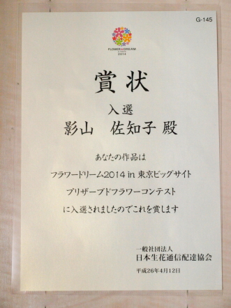 2014年 フラワードリーム プリザーブドフラワーコンテスト入賞