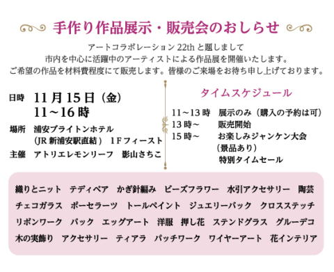 ぜひ展示販売会を毎年、同じ場所で、別の分野のアーティストとタッグを組んで開催してみましょう!