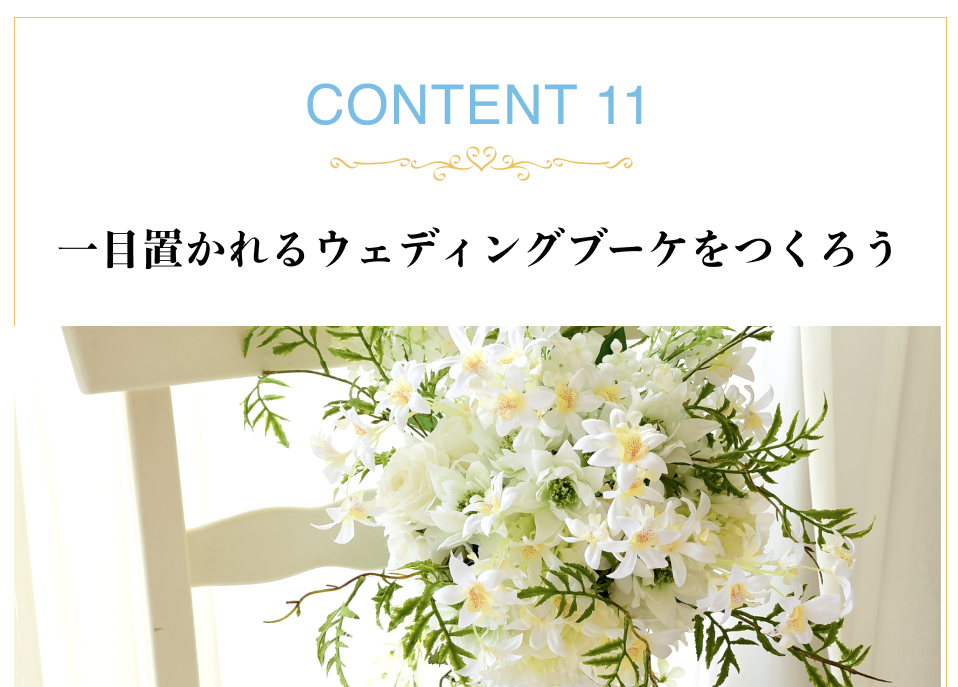 このように他では受けられないもの、他では提供していないブーケを教えることがポイントです。ワイヤリングブーケは一例で、あなたが考えだしたオリジナルのブーケの工法を伝えることでもよいのです。