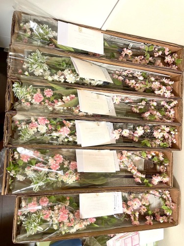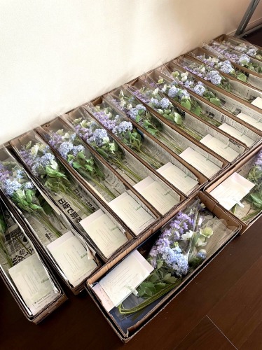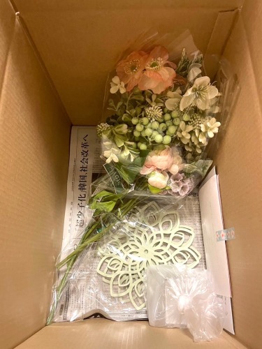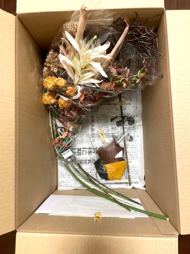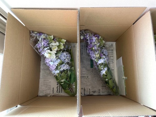 | ↑花材が送られてき段ボール、リサイク0で使用、しっかりしてるものをセレクトしています | |