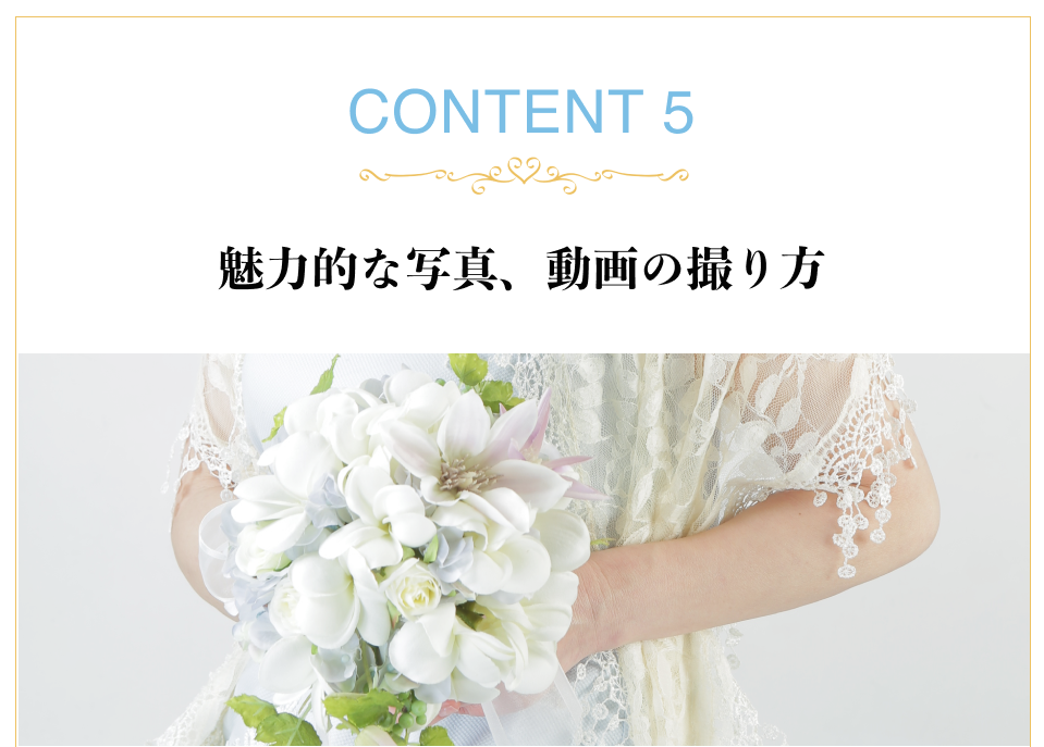 サンプルをつくったときと同じ花材が用意できないこともあります。そんなときは事前に、「写真はイメージです。イメージから逸脱することはありませんが、一部の花材は変わることがあります。」とレッス紹介文に記載しておきましょう。そうすればクレームにはなりません。また、通信講座は一人ひとりがお互い、見比べることもないので、花材や素材も、全員同じでなくてもOKです。