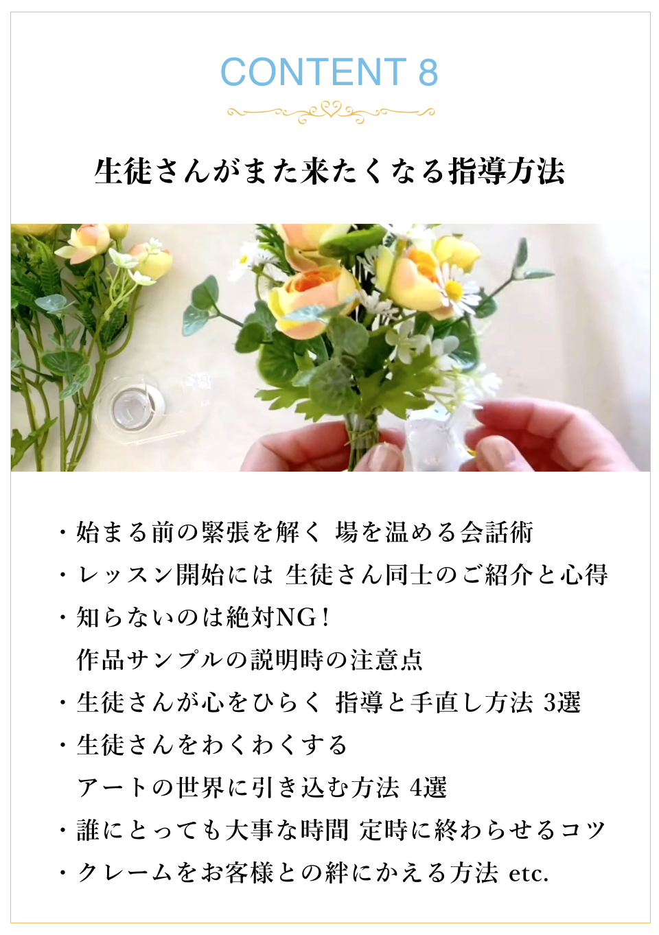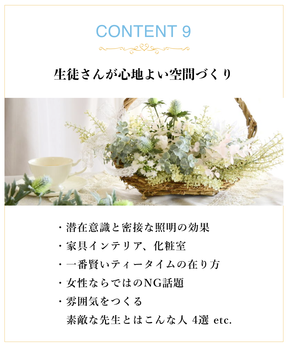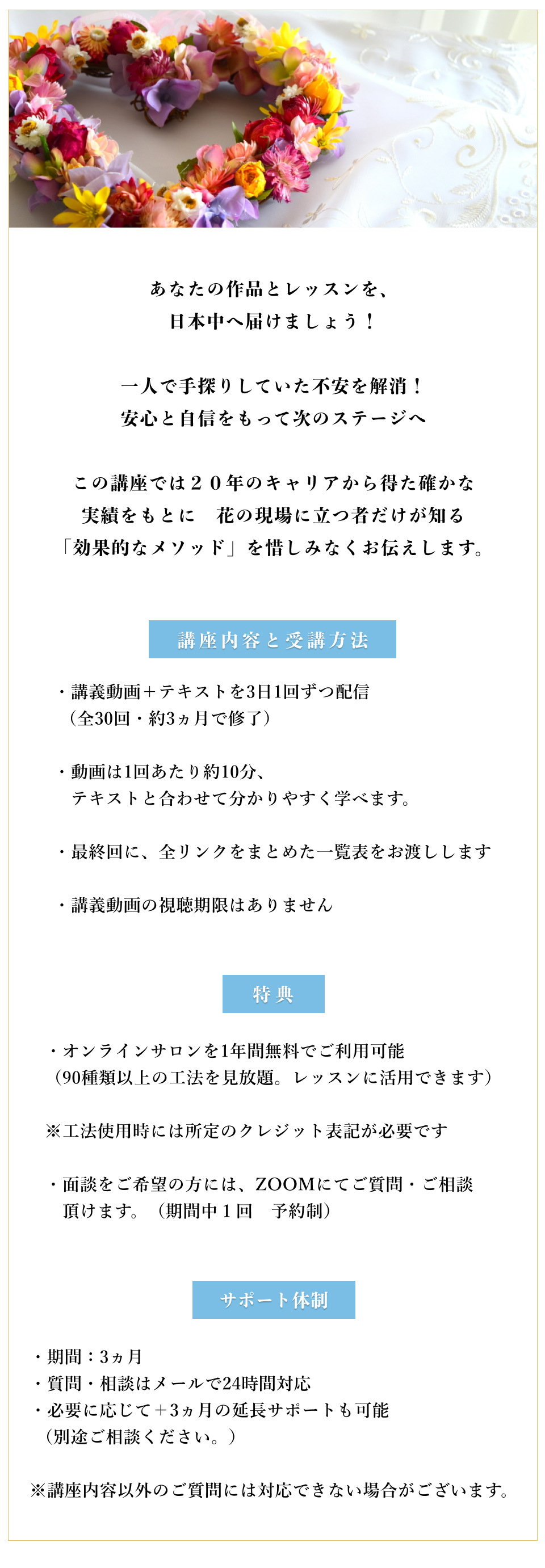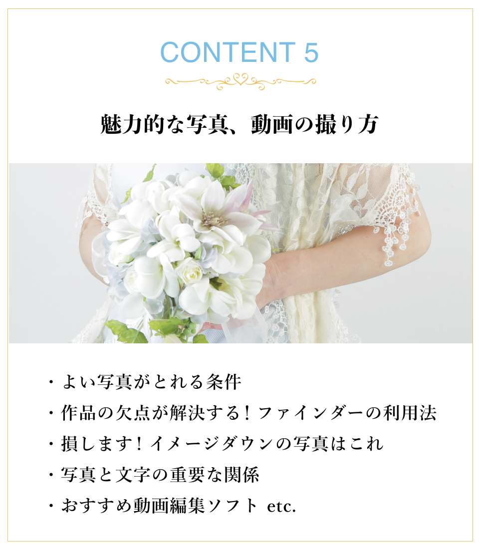 SNS運用や、デザインの考え方、今後お花のお仕事をしたいと思う先生に、大切なことが学べる講座はないかと思います