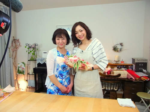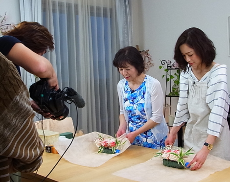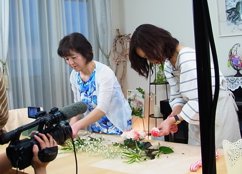 お花をご指導させていただくモデルの佐藤純さんとは、 初めてお会いしました! |