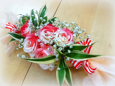 なんと当日、初めてのご対面!とっても美しいジャパンローズ。他の代用のお花で自宅でリハはしていたのですが、本物はちがいますね グラディエーションがたまりません~ |