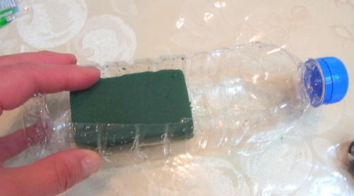 | 二時間くらい水につけたスポンジを適宜カットしていれます | |