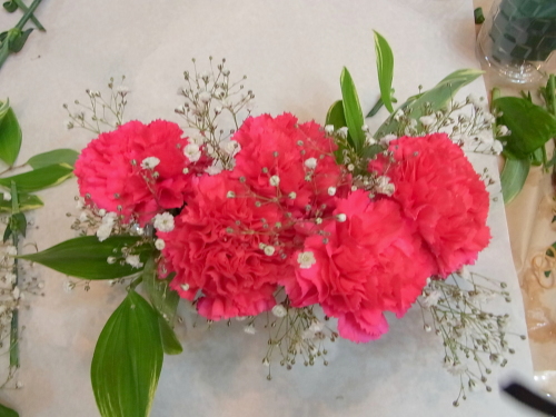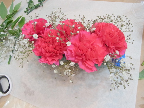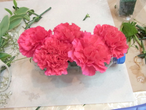 これは日本テレビのディレクターさんにお送りしたもので、番組内容を提案させていただいた工程写真です。 深夜に撮影して、デジカメなので、画像がいまいちですが、あしからず(^人^.) 素材もリーフとかすみ草、当日のものと同じアイテム数になっています 一緒におさらいしていましょう ジャパンローズが事前には入手できませんでしたのでほぼ、輪形の大きさがにているカーネーションで試してみました~ |