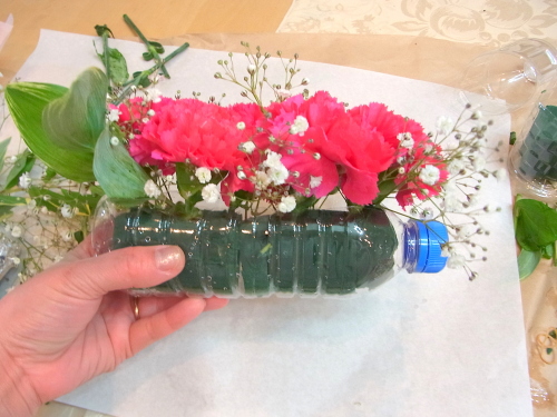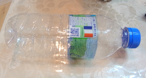 | はーいペットボトル用意!くれぐれも底が四角形のもを。 丸だと転がってしまいますよ~ |