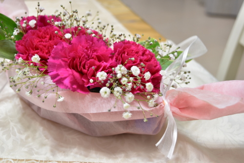| ほら!バスケット風ギフトになるでしょ(^^) この場合使用するラッピングは紙だときれてしまうので、布か不織布にしましょう |