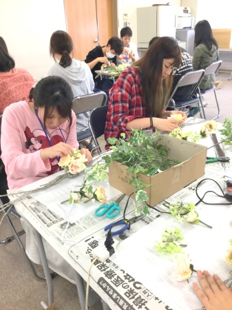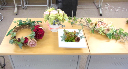| はじめてのフラワーアレンジの制作 みなさん完成しました! |