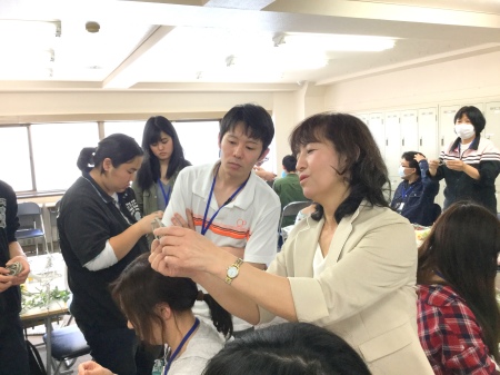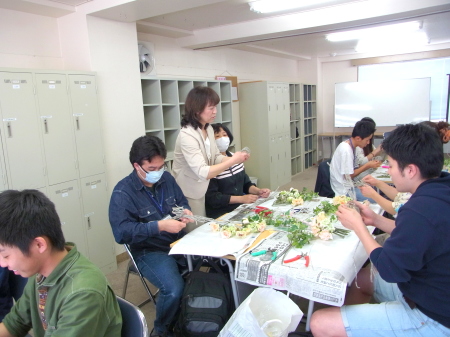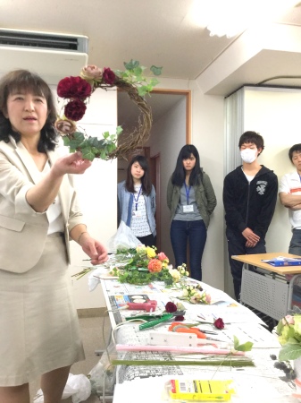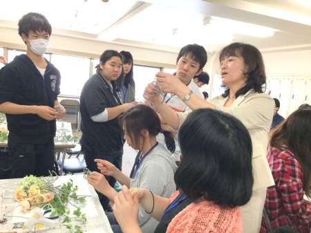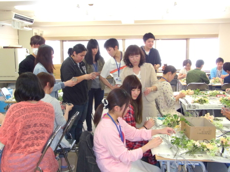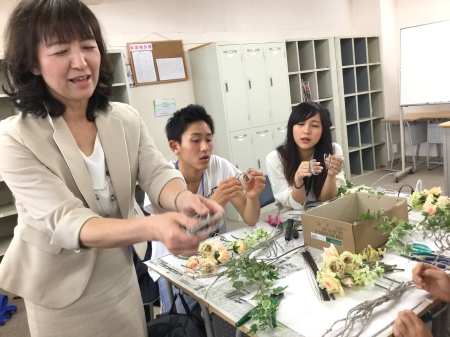 カリキュラムにはテーブルコーディネートの授業もあるそうですが、今回は「花」にフォーカスした授業を導入。「生花」と「アーティフィシャル」の回があり、私はアーティフィシャル分野を講義、制作指導いたしました。