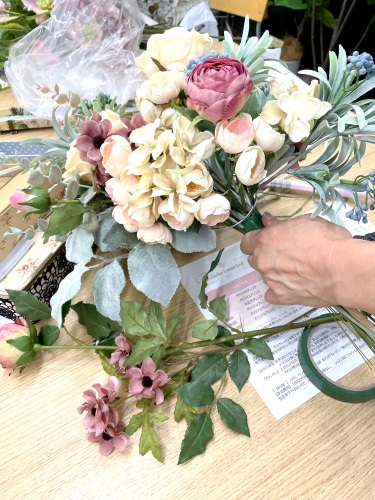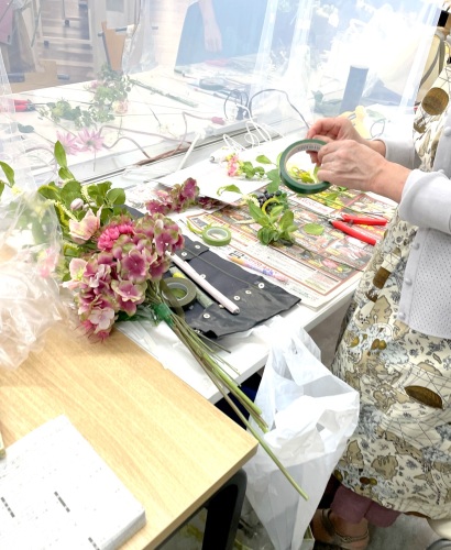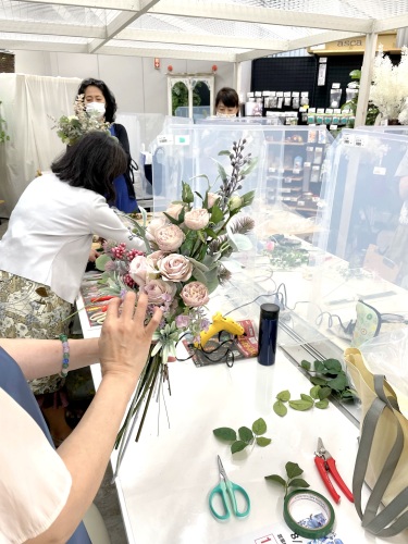 皆さん、想い想いに素敵な花を選ばれていました。本来、アレンジは作るだけでなく、選ぶところからはじまります。ご参加いただきありがとうございました。 私だけでは作ることのできない、デザイン、色合い、みなさんの素敵な作品を拝見させていただきとても勉強になりました。 次回はラインにてご案内予定です。お待ち申し上げております。 コロナ対策のため定員は10名様までになります