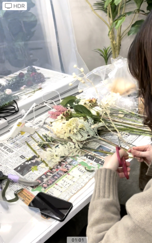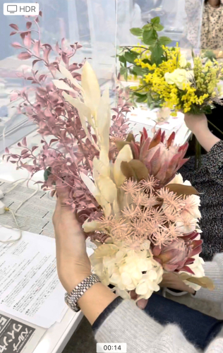 思い思いに選んだお花たち、個性あふれる作品になりました