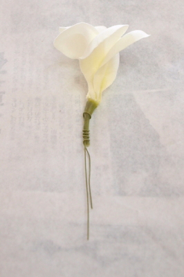 ツイスティングメソッド (花頭のすぐ下、茎、切り口の三か所にねじ賭けます。ワイヤリングのみテーピングはしません。範囲の狭いフォームにはテープがひっかりやすいため。