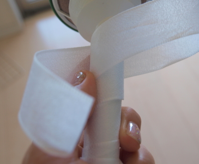リボンを指先に包帯をするような 要領で先端からまきあげましょう