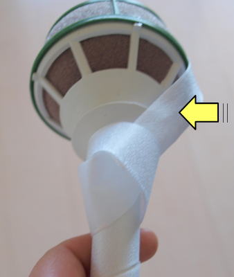 巻き上げ方、両面テープを持ち手に縦長にはります(2か所)