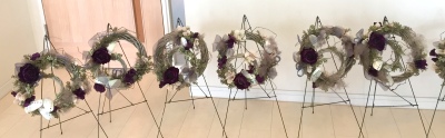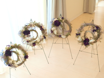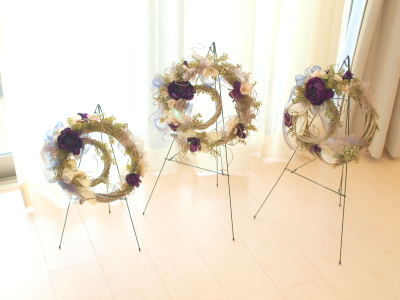 大小二つのリースをワイヤーとグルーで固定しています。小さい方はやや斜めに角度をつけています。