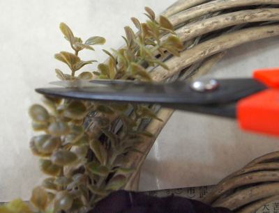 ボックスウッドも、随時、添えていきますが、時々、ハサミで段差をいれてみましょう。凸凹にすることで自然で立体的にみえます。