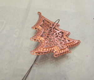 クリスマス、星 ハート いずれも、一センチほどの幅でUピンにしてひっかけ、後でねじります。