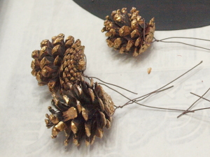松かさ2個も、写真のように、ワイヤリングします。