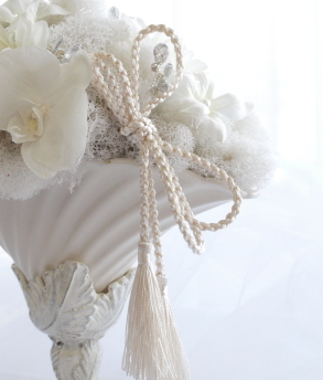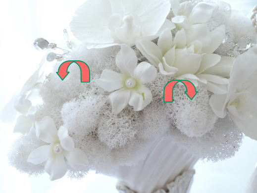 コチョウランがはいったら、ビーズをつけた花を挿します。 |