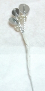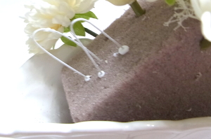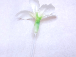 ビーズをつけた花は緑の茎を抜いて、グルーをつけたワイヤーを挿します。 |