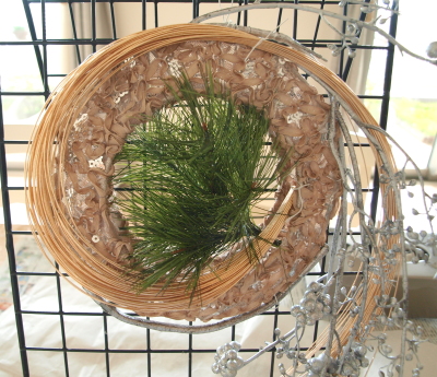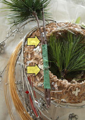 松枝の最初の一本目は、まるごとリースのなかにいれて背景にします