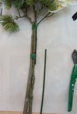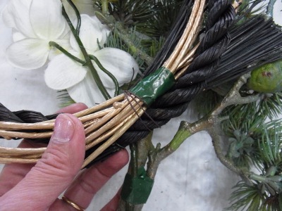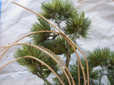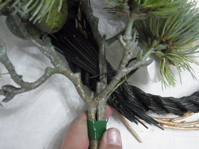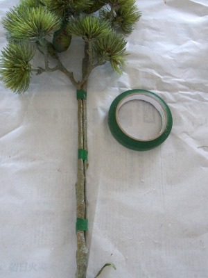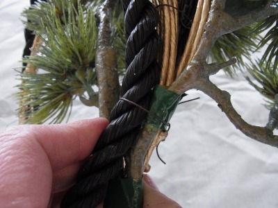 まとめまて、松の中に挿しこんでワイヤーで固定します |