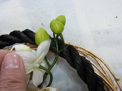 位置としては松の中間くらいにとめて、茎の上にストレートに下がるようにします。