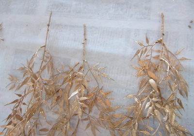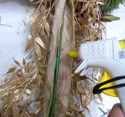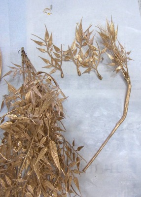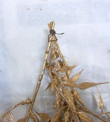 ゴールドのつるを20~25センチの範囲でまるめてワイヤー留めます。
