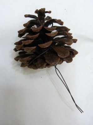 松かさにワイヤリングし、好みの位置にグルーでとめます。