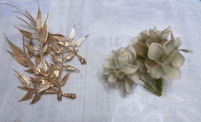 サンプルはリメイクしています。花ビラを小さくしたり、あるいは一枚づつ花びらを切り出し、丈をつめたものをまとめて小花をつくったり、いろいろ楽しんでみましょう