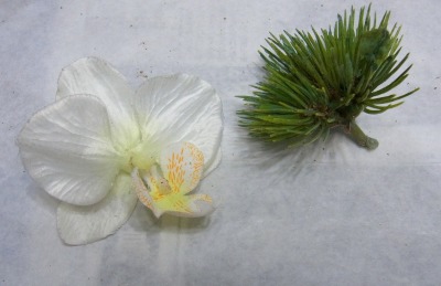 抜いた葉は太いワイヤーを挿し戻ししてピックにもなります。(グルーで固定) 場所によってはそのままグルーで直付けで。 |