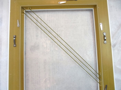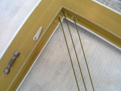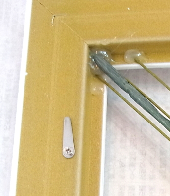 もう1本もワイヤーのあいだに差し込み、フレームのヘリにとめます。