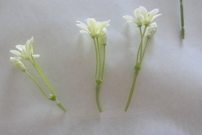 スターフラワーは長さがいろいろなので、まとめてこんな風にしました。ワイヤリングでもOKですね。