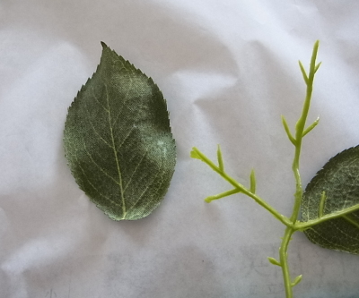 あまっている葉を葉脈からとりはずし、背面に貼ります。
