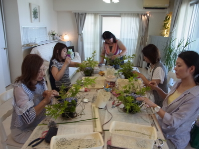 全部花材がはいったら、最初にいれた アガバンサスをチェックしてくだしさい