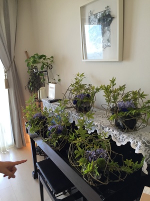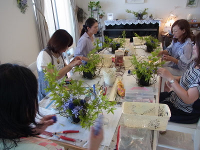仕上げにアジサイを小分けにして、グルーで止めます。器にはっても綺麗です。