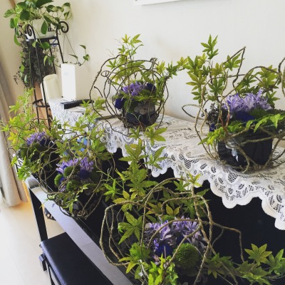 たくさんのアレンジが並ぶと森林浴をしているかのような気持ちになります。