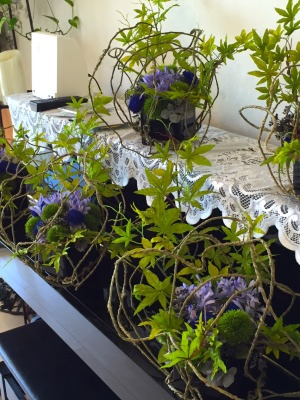 アレンジする方によって、モミジの角度が微妙に違ったり、青のソーラーフラワーの位置で印象も変わりますね