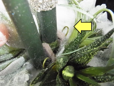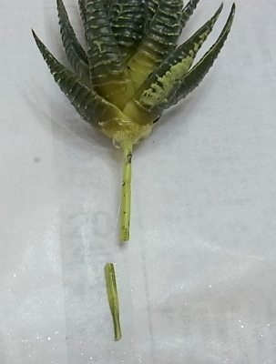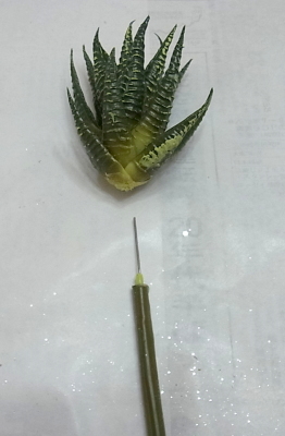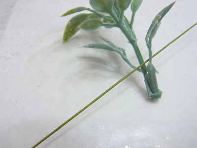 ハルオチアは太くて刺さりませんンので、ビニールの茎を脱がします。