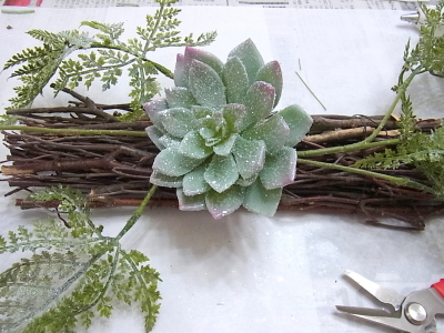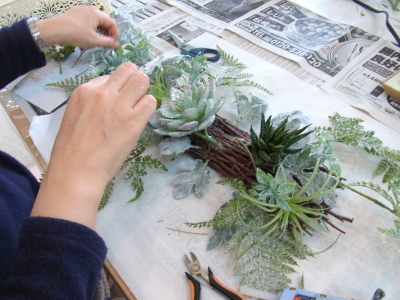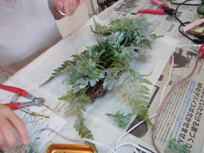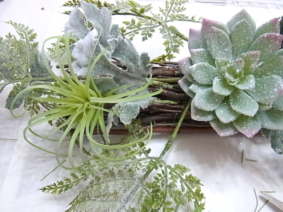 花材はすべてグルーで止めます ワイヤーで巻きつける作業はありません。