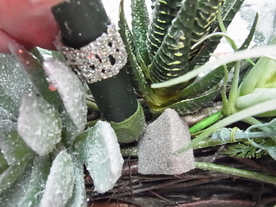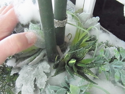 先ほどのキャンドルを入れた部分も綿雪で隠します。