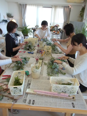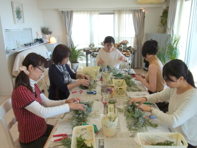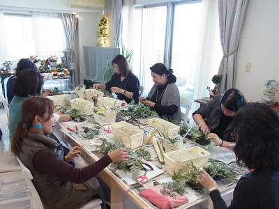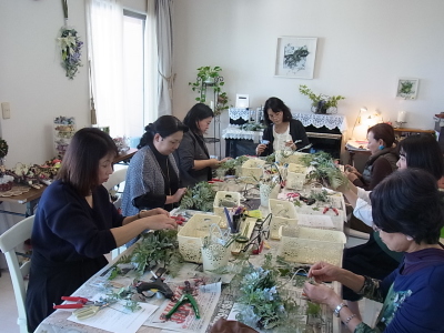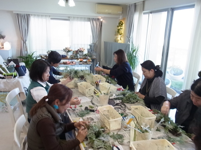 これは裏側ですが、正面からは少ししかみえなくても、背面にも必ず、花材を入れましょう。