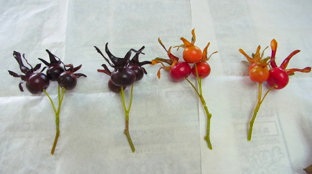 主役はなんといってもオレンジのローズヒップ、どこにするかポイントです。一番目を引きます。