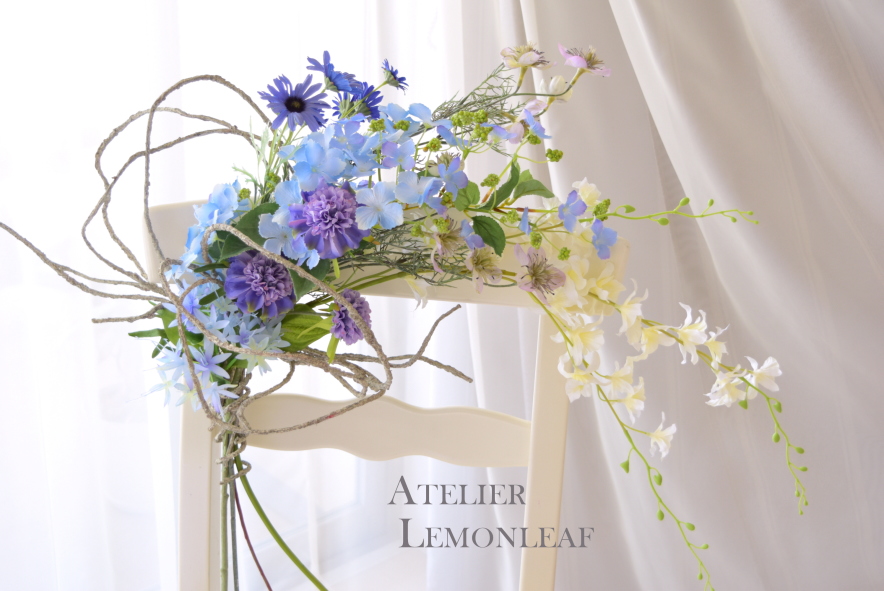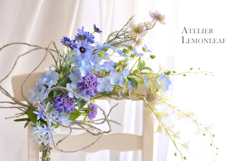 今回はAtelier Lemonleafが最も得意とする 動きと空間をとらえるアレンジです。思う存分、ダイナミックにつくりましょう!ツィッグバンドルがはいると、ぐんとアレンジが大きくなり、作品がグレードがアップするのを感じていただけるのではとおもいます。
