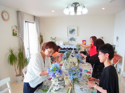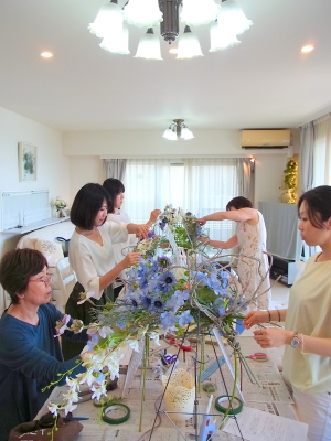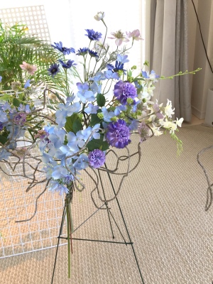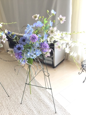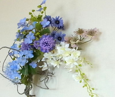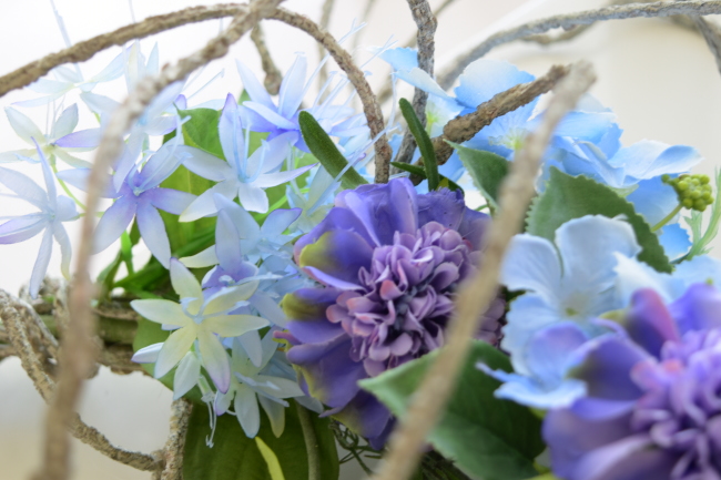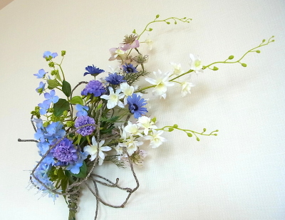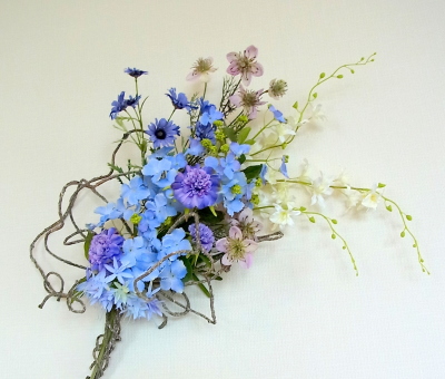 伸びやかなアレンジは手作りした人だけのアドバンテージ!一般の人はこのような花のインテリアの存在をしらないので、ギフトとして差し上げても、本当に感激してくださいます。